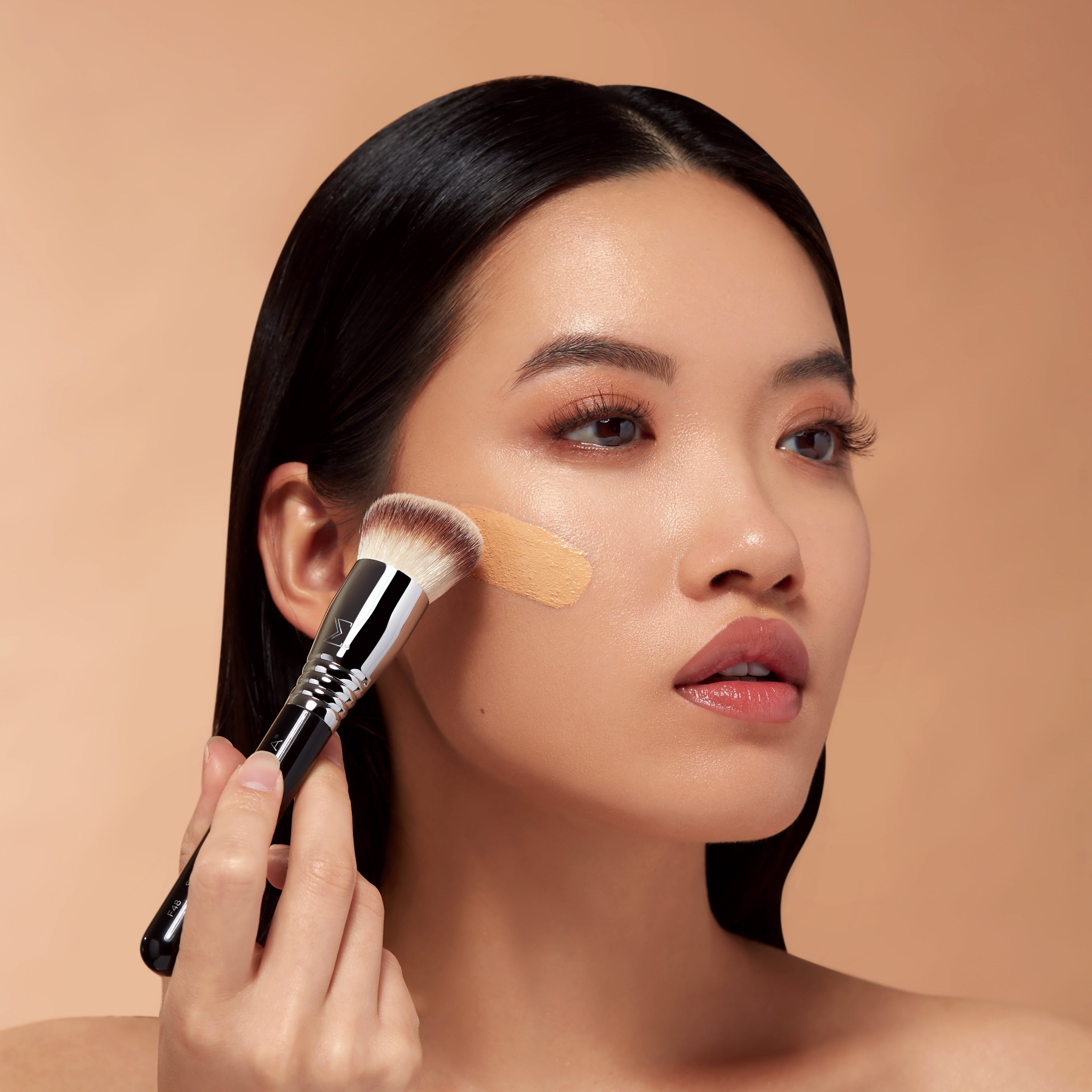 We recommend a dense, flat-top brush like the F80 Flat Kabuki™ for seamless application and full coverage.