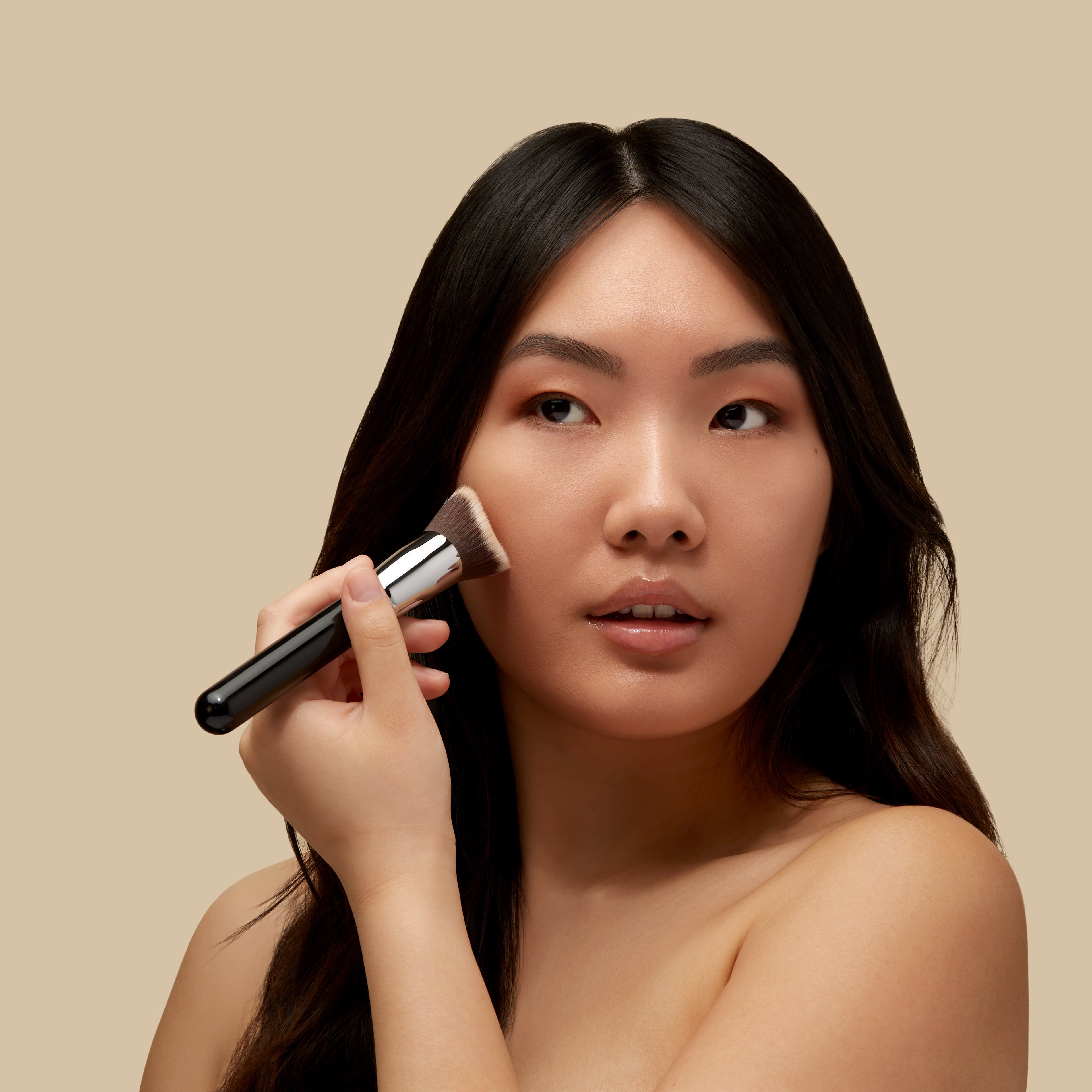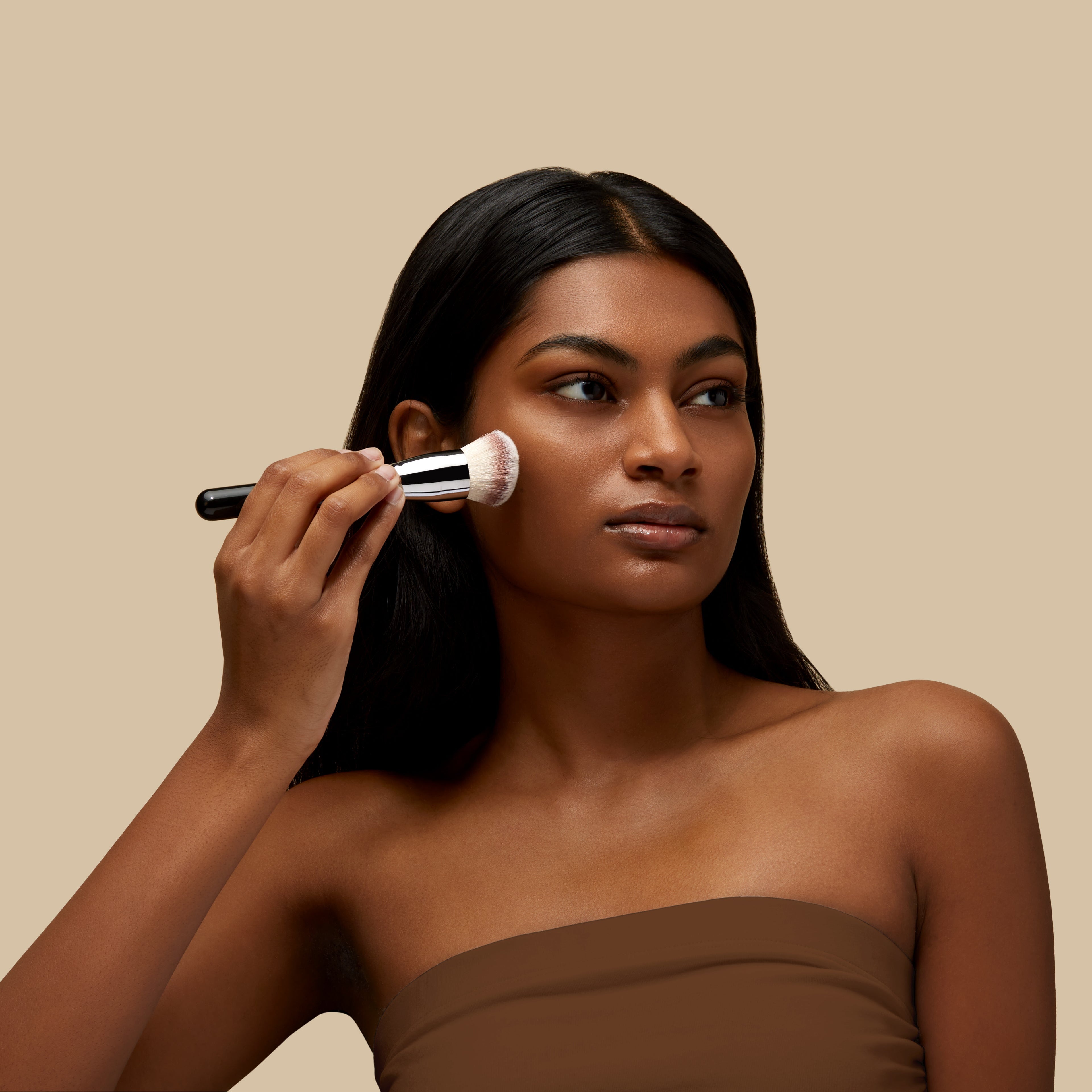 A foundation brush gives more control and polish, especially around the nose and mouth. It also helps apply product evenly without soaking it up.
